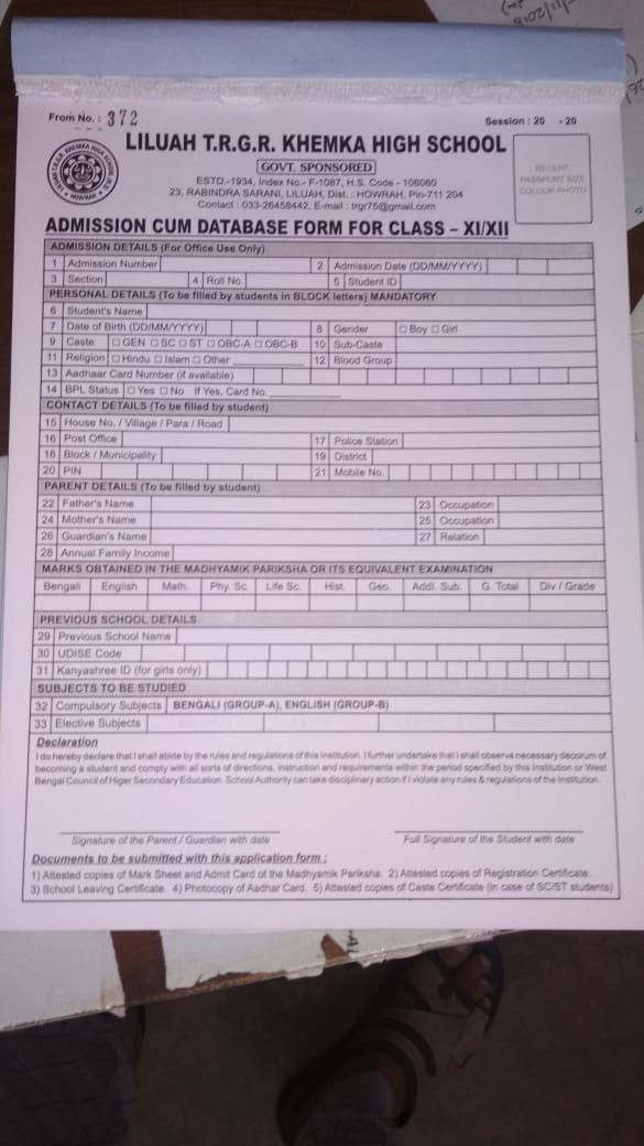 Admission Form for Class XI & XII - Download
