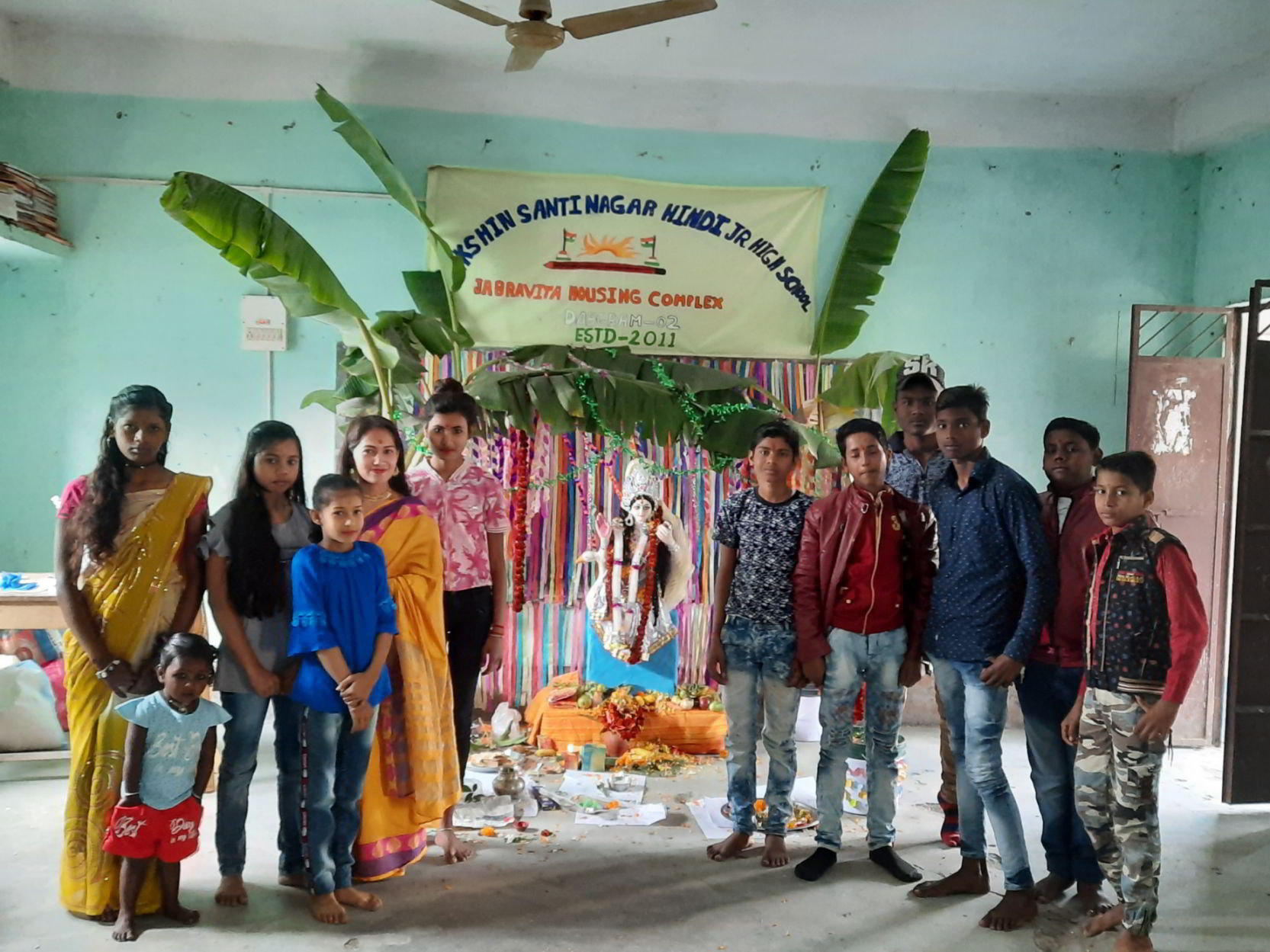 Dakshin Santinagar Hindi Junior High School is a Hindi medium Government aided School, established in the year 2011.It is situated at Jabravita Housing Complex, Dabgram-2, Rajganj West, Jalpaiguri, Pin - 734004, West Bangal.On the way to the School, one can find Government FCI GODOWN, at the south of the school.Again, NJP Railway Station is about 3.5 k.m away