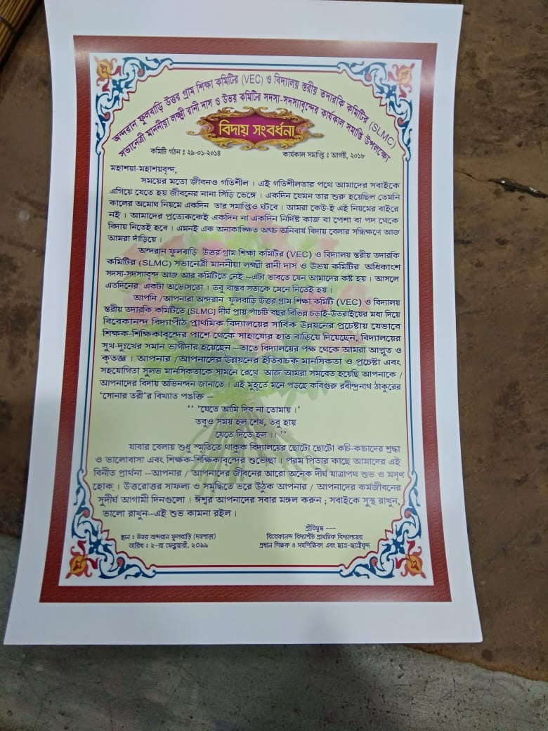 Speech of the Head of the Institution : I first came in close contact with Vivekananda Vidyapith Primary School on 25th January, 2017. I fell in love with the School at my first sight. It had already occupied a place of soft corner in my heart without any intimation. The School started its journey since 1967, the year of establishment. It is not only a place of having education, but also an institution of great honour, respect, expectation and love for all section of the villagers. All of us look upon the school as a temple where all the teachers and the students are the worshippers. From a single mud house to tin-shadded pucca building today, the school has been maintaining its tradion of excellence. The school belongs to me, you and all. So let all come forward to keep the school-environment clean and to maintain its hygiene good.