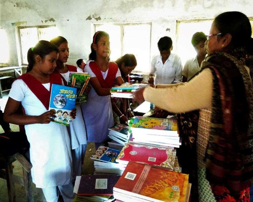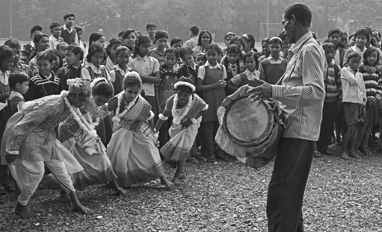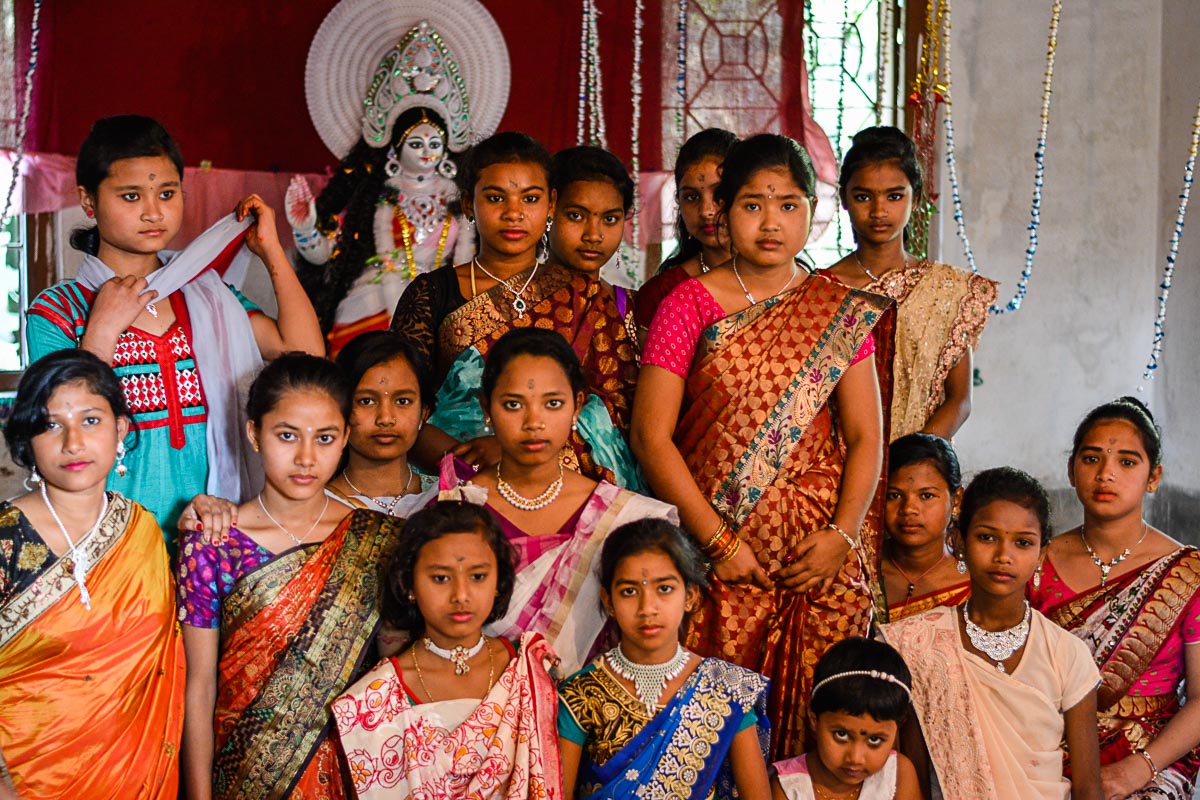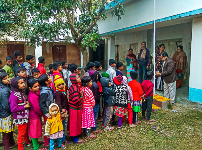 Students participate in decoration of a room during Sraswati Puja along with our beloved Teacher..
