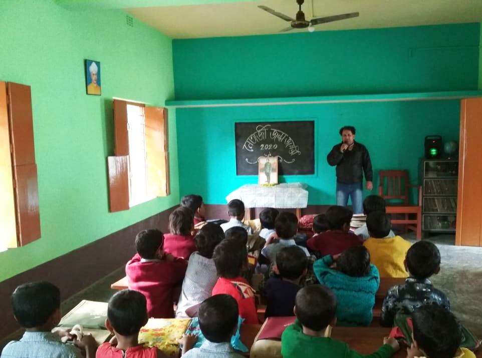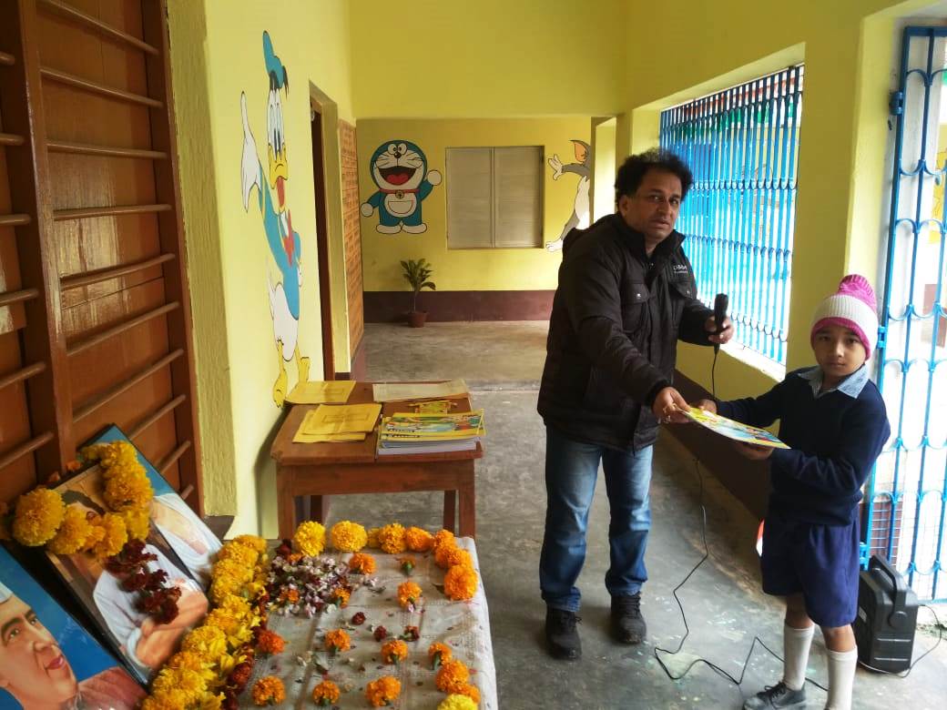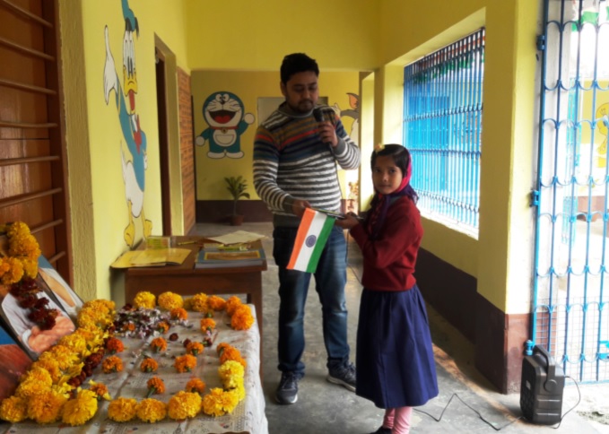 Republic Day celebration and distribute drawing copy, color set etc. to all students.