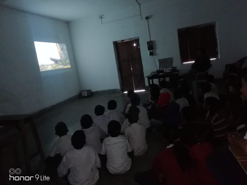 Students being taught with the help of digital devices.
