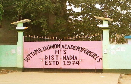 DUTTAPULIA UNION ACADEMY FOR GIRLS'(H.S) opened in 1974 in the suburb of Ranaghat subdivision.The school is set on spacious ground in a residential area in Duttapulia ,Dhantala,Nadia.This institution is a Higher Secondary one with an enrollment of 1898 students.The school community comprises a wide range of cultural and socio-economic backgrounds.DUAG aims to create a caring ,h