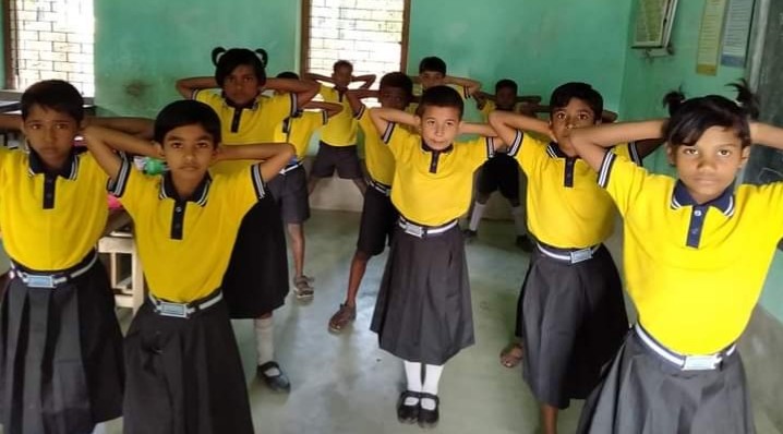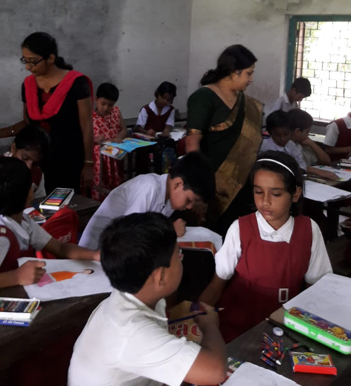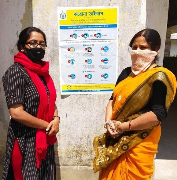 বিদ্যালয়ে "কোভিদ 19" এ পশ্চিমবঙ্গ সরকারের সচেতনতা পোস্টার লাগানোর কর্মসূচিতে দুই সহ শিক্ষিকা।