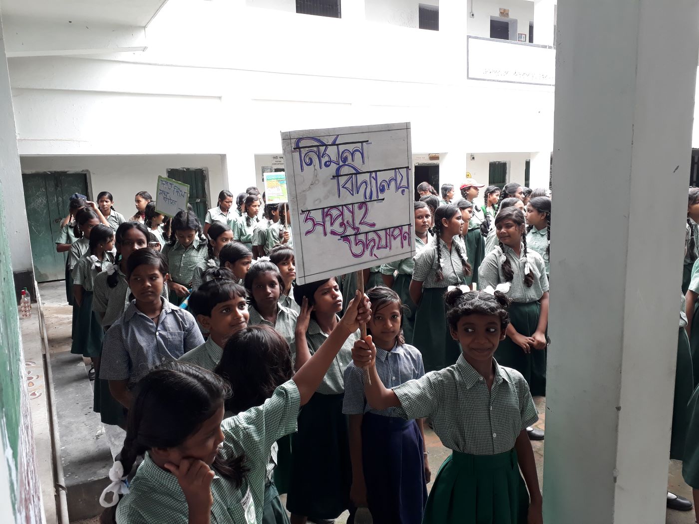 Students are creating awareness to their neighbors about necessity of cleanliness.