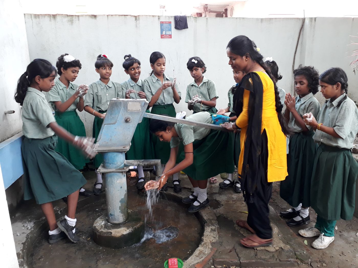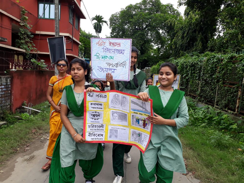 Students are creating awareness to their neighbors about importance of maintaining basic hygiene.