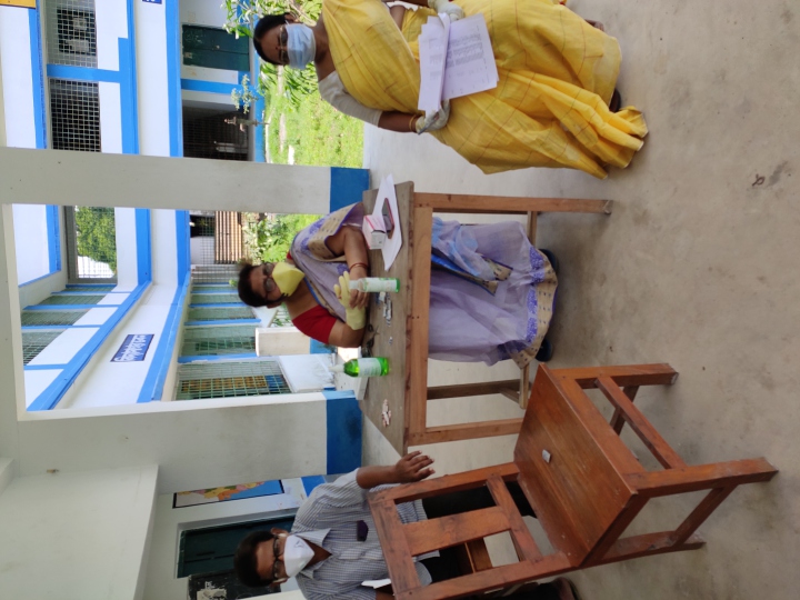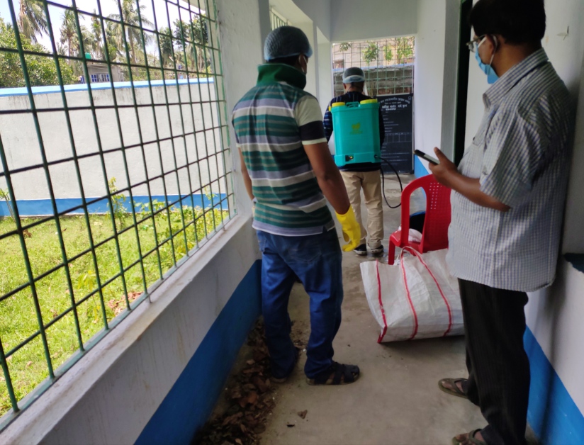 The School is being sanitized before the distribution of rice and potatoes for the 3rd phase.