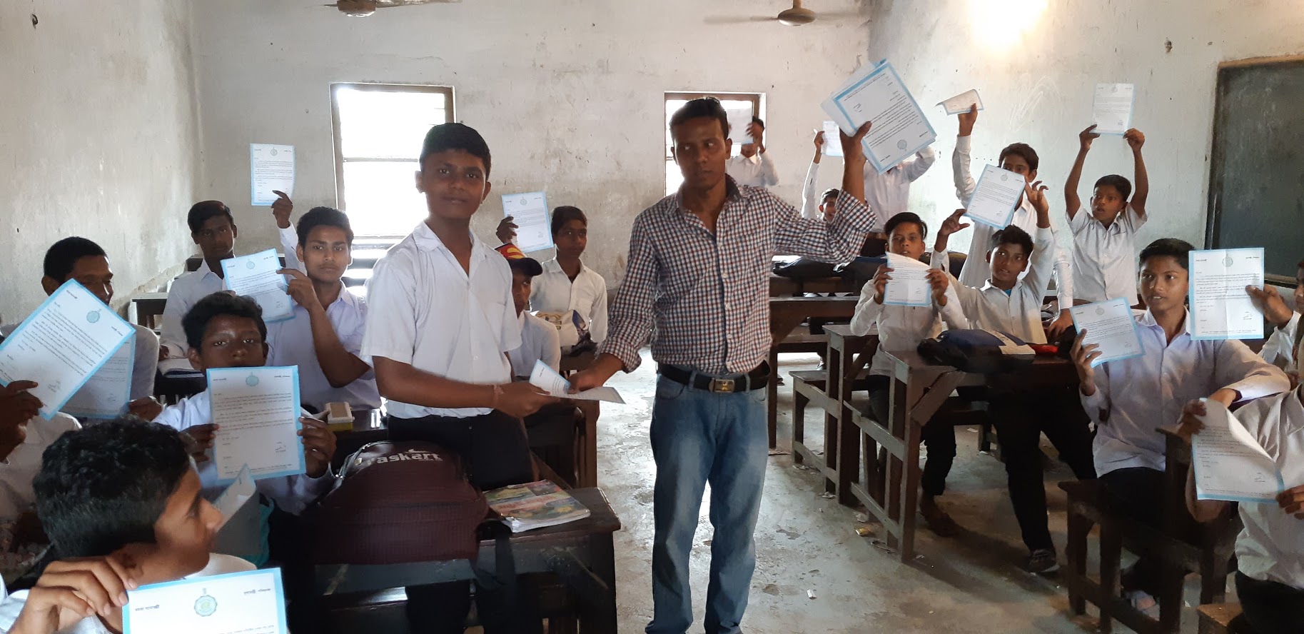 Our Head Master Sri Niraj Kumar Roy distribute the HMIC letter to their staff on 08.09.2021.