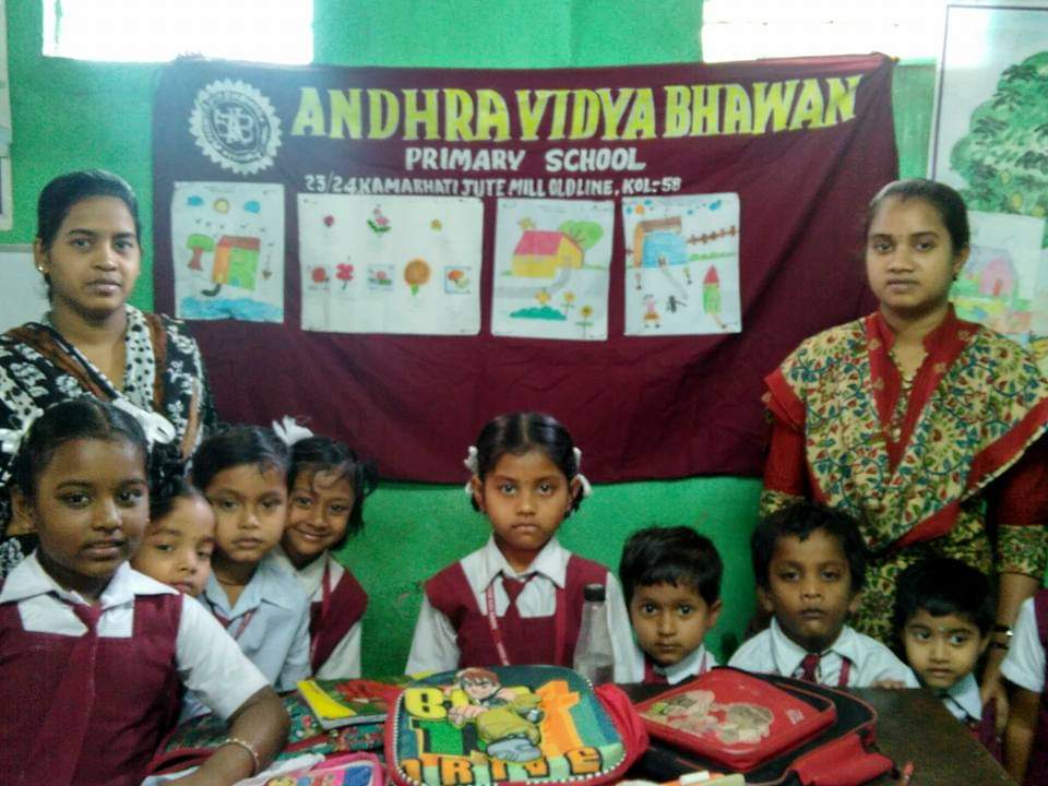 Andhra Vidya bhavan primary school is a government aided telugu medium primary school which was established in 1968 and is located in five point more, kamarhati. In this school there are two trained teachers are present to teach the children of telugu language from class pre-primary to class-4. The school is very helpful for our telugu people as it is the one and only telugu school in