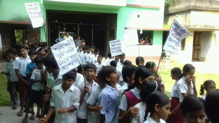 THE STUDENTS PARTICIPATED IN A RALLY ON NIRMOL BANGLA
