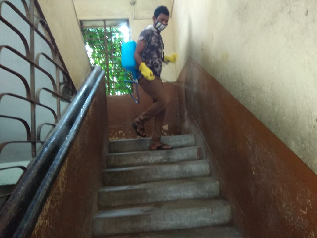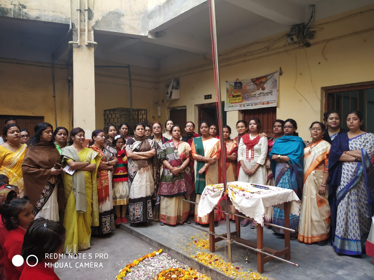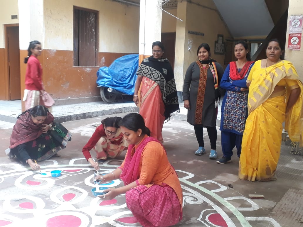 Saraswati puja - students are making alpana