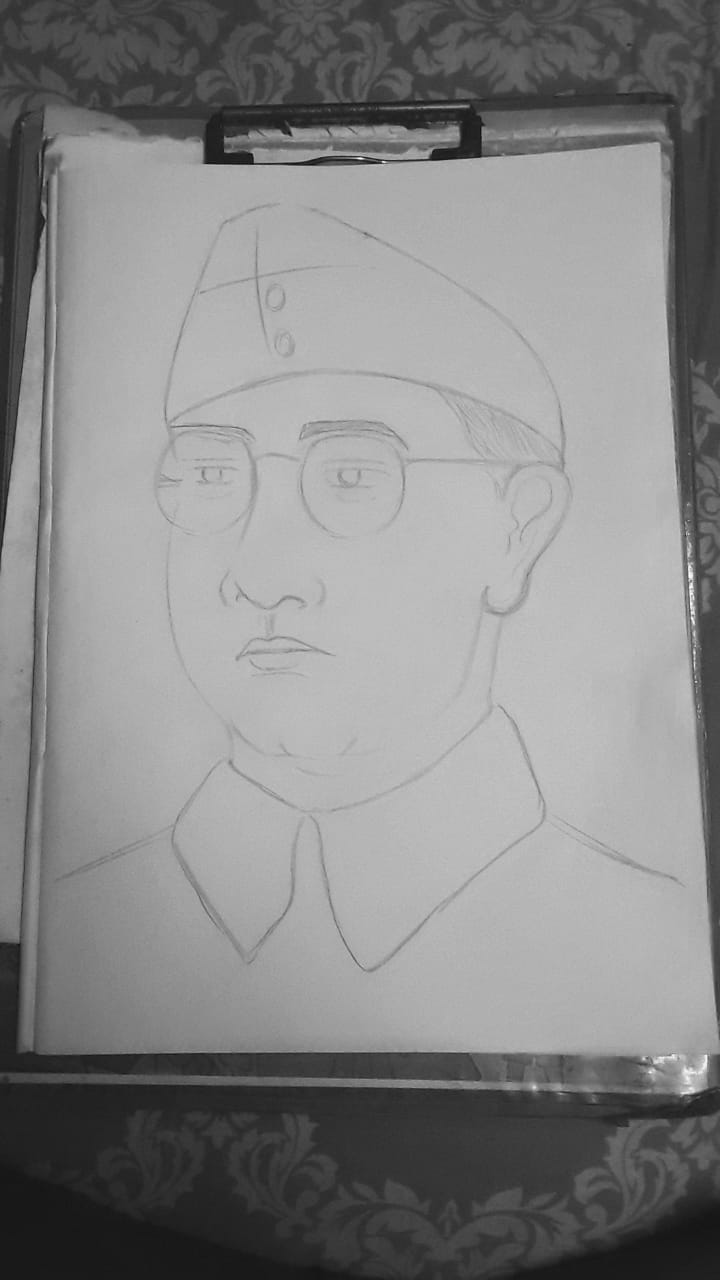 SKETCH OF NETAJI SUBHASH CHANDRA BOSE DRAWN BY OUR STUDENT.