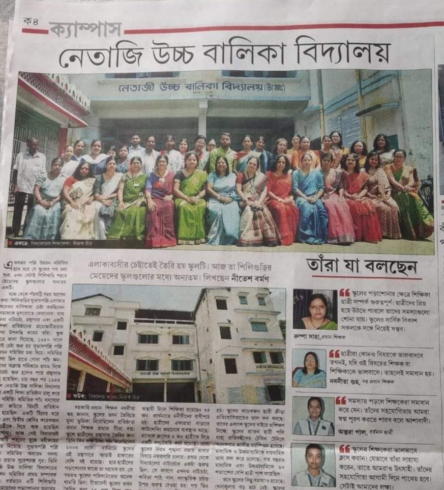Netaji Girls High School is one of the best Higher Secondary school in Siliguri,West Bengal since 1954.The school is situated in Siliguri Municipal Corporation area in the district of Darjeeling.Netaji Girls' High School has made a name for itself in the last few decades as a centre of excellence.The school has a decent infrastructure and well qualified,dedicated teachers.