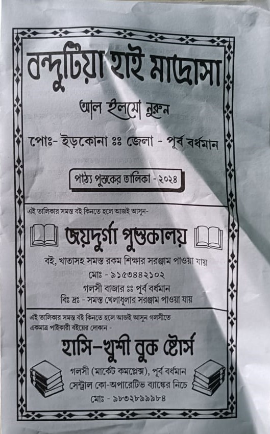 Bondutia High Madrasah situated in Galsi -I Block of Purba Bardhaman, West Bengal. It was founded in 1974. The Great land donors of the villagers' . Their other Contributions are Milestone of the Madrasah. There are also huge contributions of the local well wishers of the Educated Muslims and Nearby Mosques in the establishing and developing activities of the instutions.