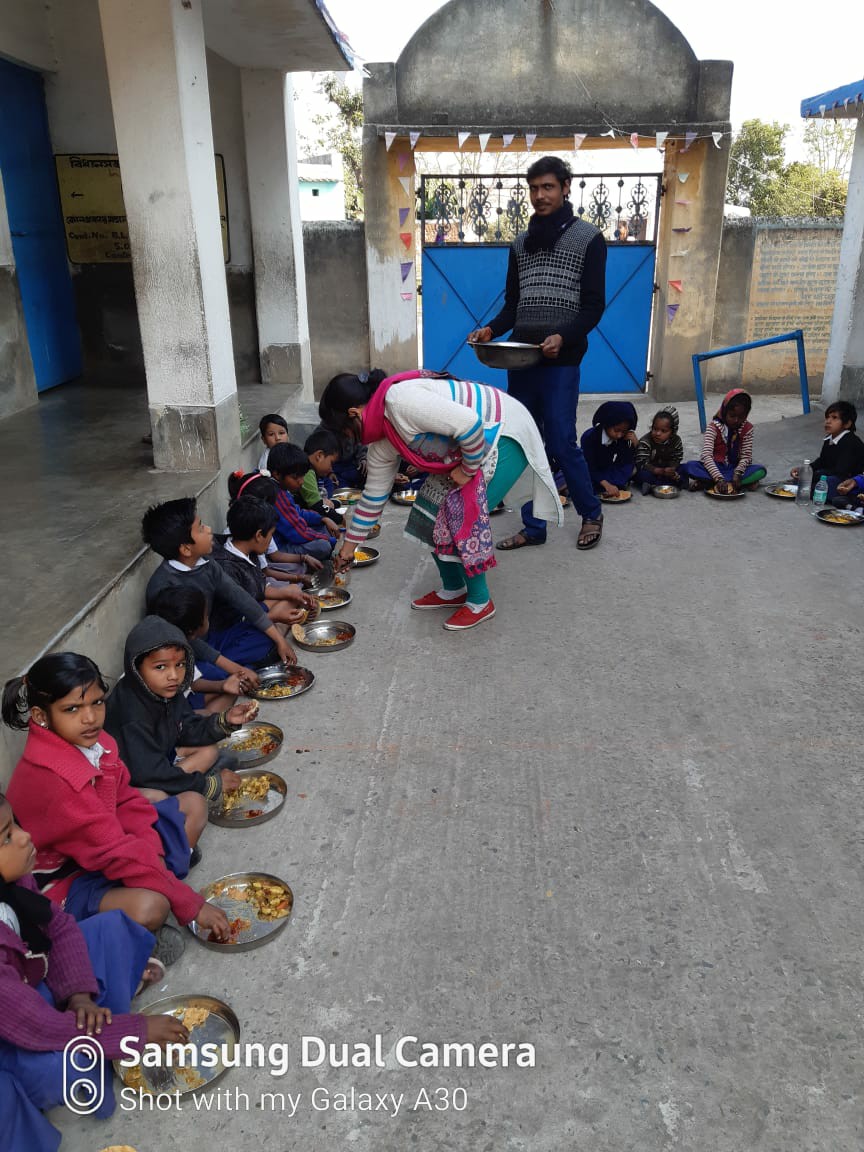 Serving mid day meal to students by our teachers